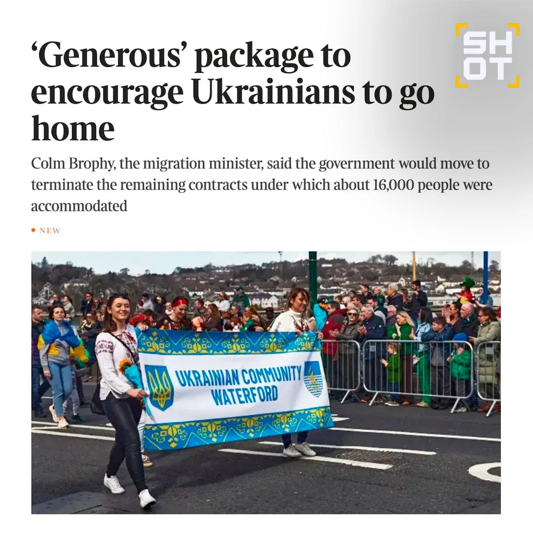 По данным ряда западных СМИ, Ирландия резко меняет свою миграционную политику и готовится в течение года разорвать контракты на размещение около 16 тысяч украинских беженцев, большинство из которых — мужчины призывного возраста. Госминистр страны по миграции Колм Брофи уже заявил — «Мы хотим прекратить ситуацию, когда эти люди живут за счт господдержки. Ни одна другая страна ЕС не дат таких условий. Им придется уехать».