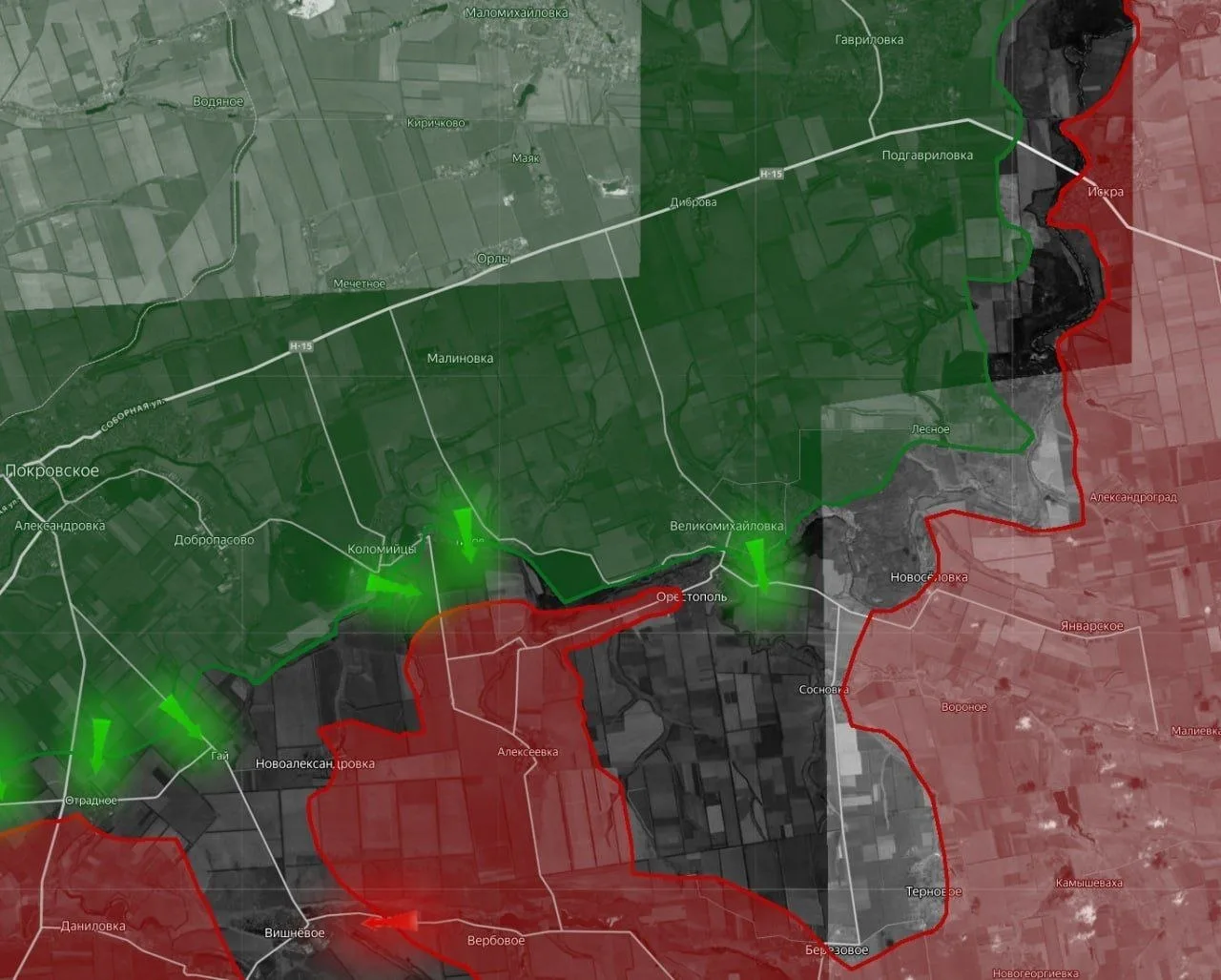 На Днепропетровском направлении российские войска значительно продвинулись северо-западнее Александрограда — сообщают OSINT-паблики