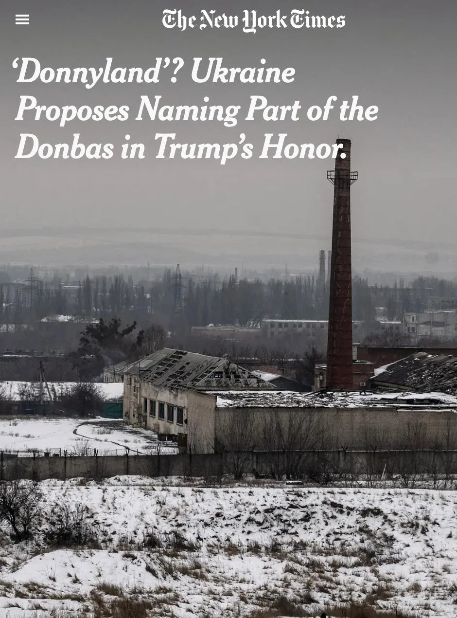 NYT: украинские переговорщики предлагали переименовать подконтрольную ВСУ часть Донбасса в «Донниленд».