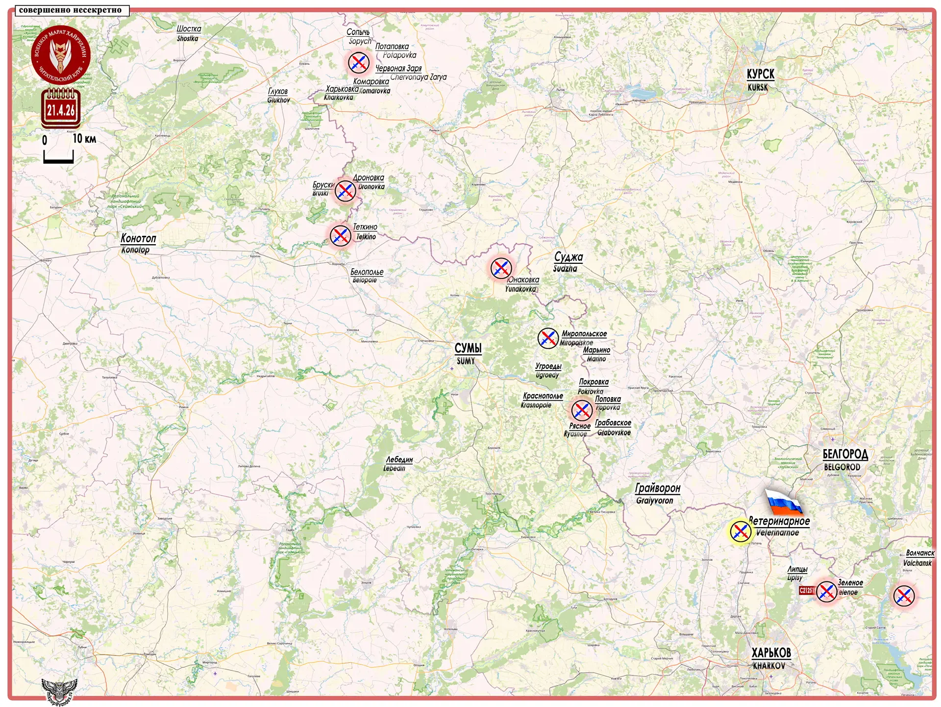 Как вчера сообщило МО РФ: «Подразделения группировки войск «Север» установили контроль над населенным пунктом Ветеринарное Харьковской области».
