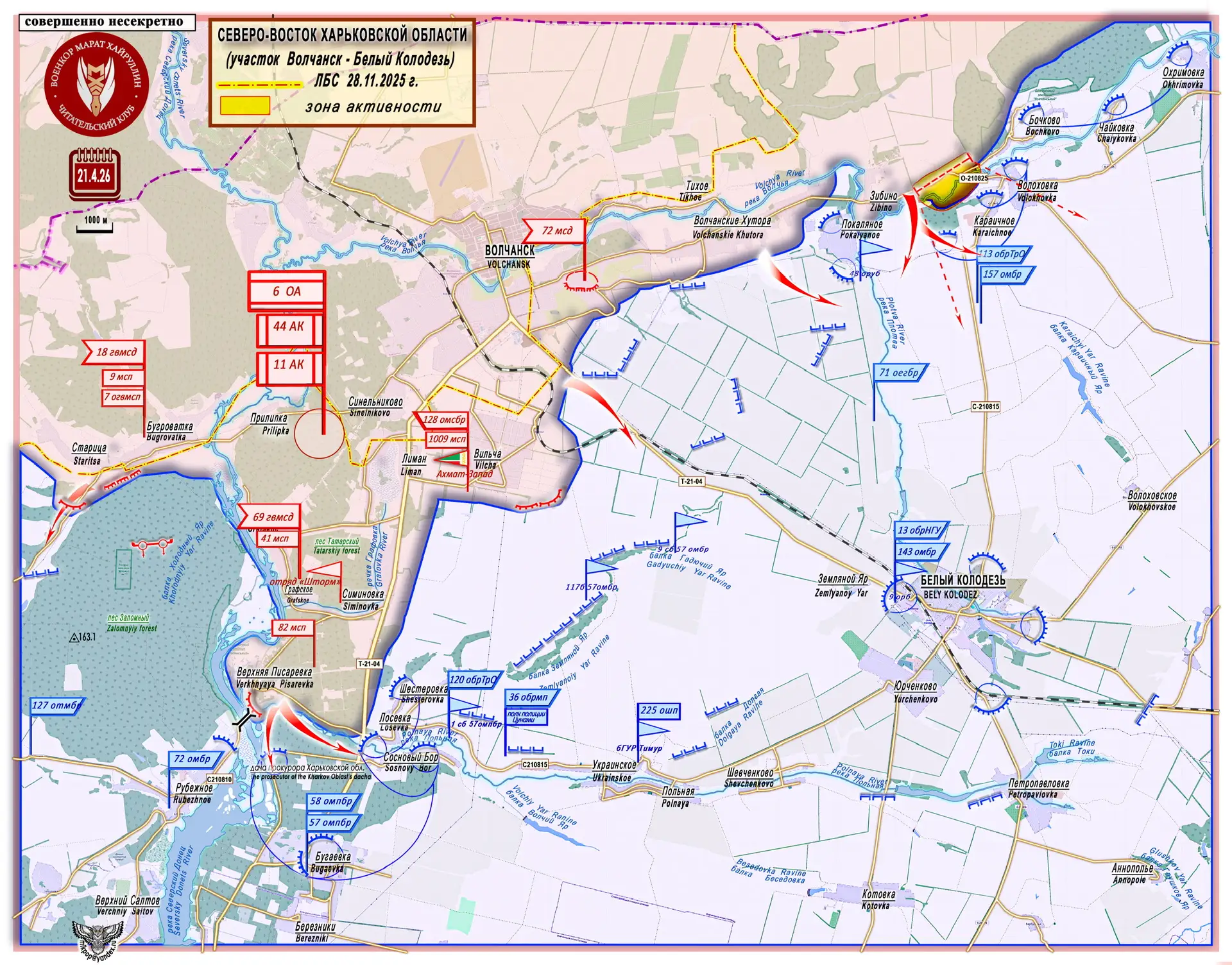 Имея плацдарм на возвышенности, где почва просыхает быстрее, и контролируя радиальные трассы снабжения ВСУ Казачья Лопань - Харьков и Уды - Золочев - Харьков, российские подразделения формируют выгодный оперативный плацдарм для давления на два узловых района этого участка: н.п. Казачья Лопань и Уды.
