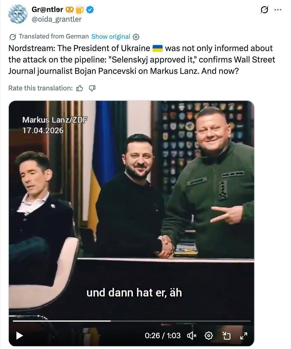 Зеленского обвиняют не только в том, что он знал о нападении на газопровод "Северный поток", но и в том, что он его одобрил