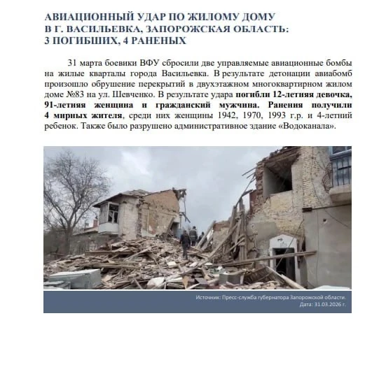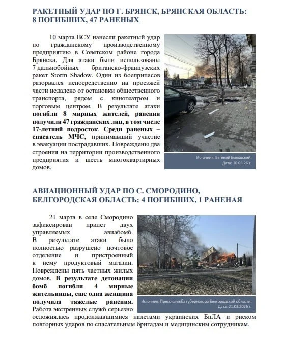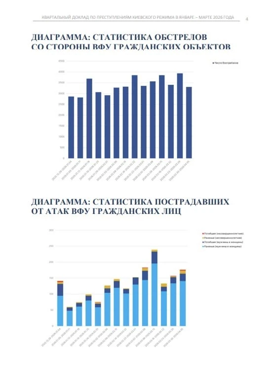 Публикуем квартальный доклад по преступлениям киевского режима в январе-марте 2026 года, подготовленный Послом по особым поручениям МИД России Р.В.Мирошником.