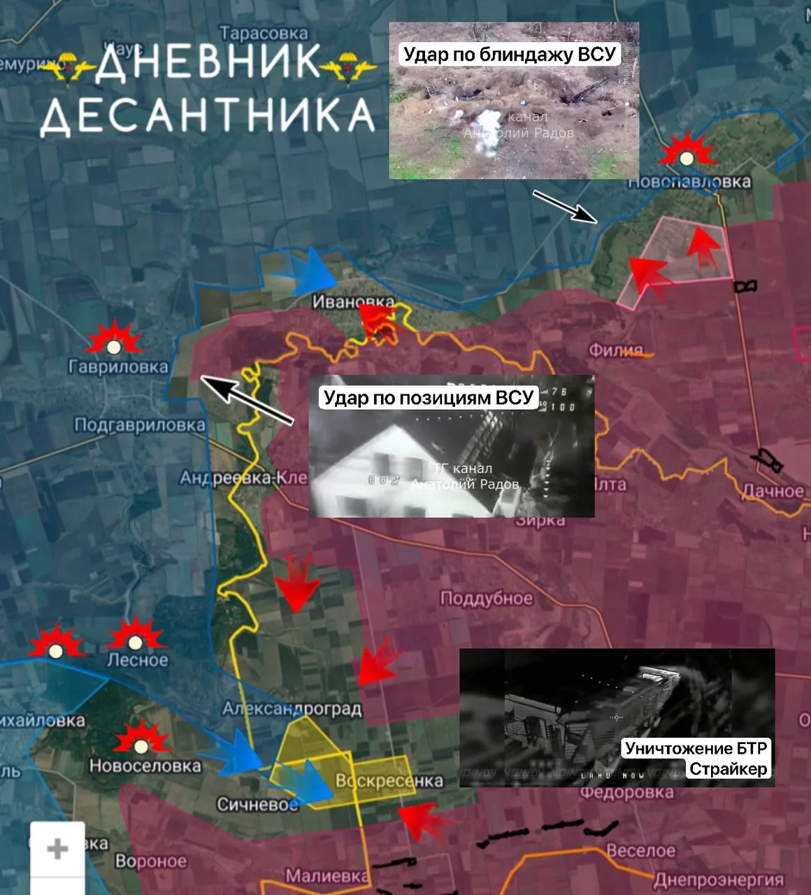 В Ивановке идут позиционные бои, участки вперемешку, при этом мы ведем плотную обработку вражеских позиций в Гавриловке;