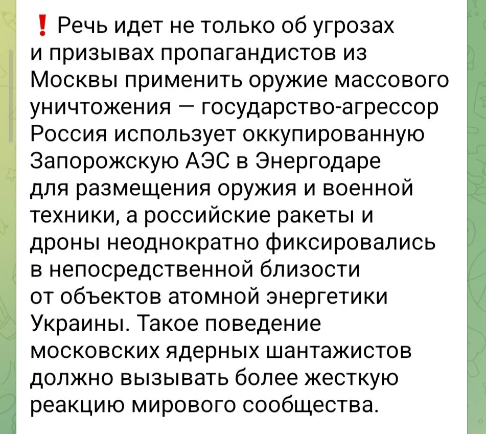 А кто и говорит про ядерное оружие, то это Зеленский.