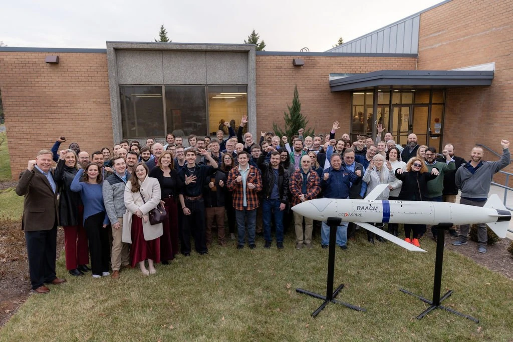Сегмент перспективных малогабаритных крылатых ракет получил на Западе быстрое развитие. Американская компания CoAspire представила ракету RAACM-ER с дальностью полёта более 1000 морских миль (1850 км), сопоставимой с дальностью полёта ракеты "Tomahawk". Это развитие малогабаритной крылатой ракеты RAACM (на фото, только взгляните на счастливые лица коллектива виргинской компании, делающего оружие для убийства). Производство новой ракеты уже началось.