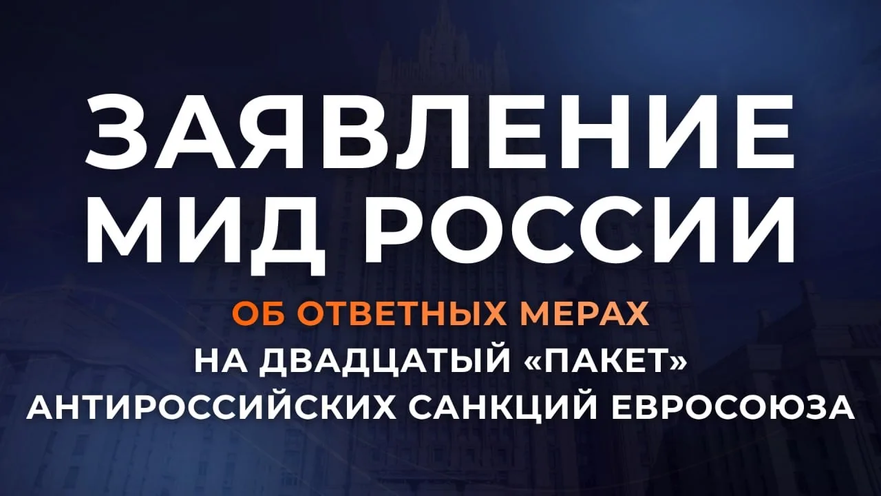 Заявление МИД России об ответных мерах на двадцатый «пакет» антироссийских санкций Евросоюза