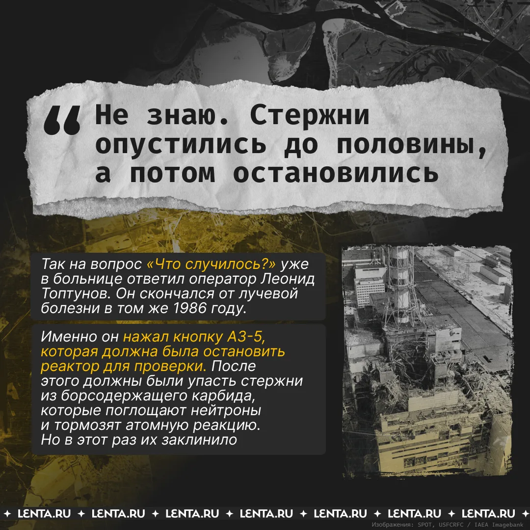 К годовщине аварии мы восстановили события ночи 26 апреля 1986 года и поговорили с выжившими участниками — ликвидаторами последствий. Что стало причиной взрыва? Почему власти замалчивали масштабы катастрофы? С чем столкнулись работники станции, ликвидаторы и добровольцы? И может ли повториться трагедия?