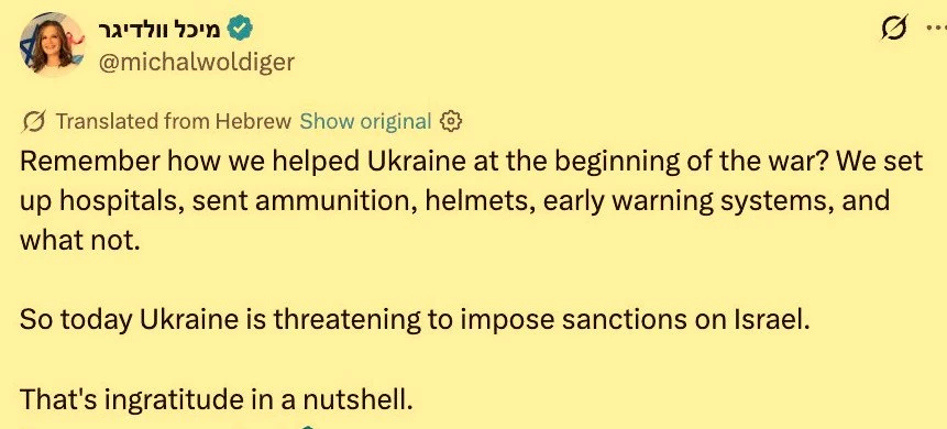 И вот сегодня Украина угрожает ввести санкции против Израиля.