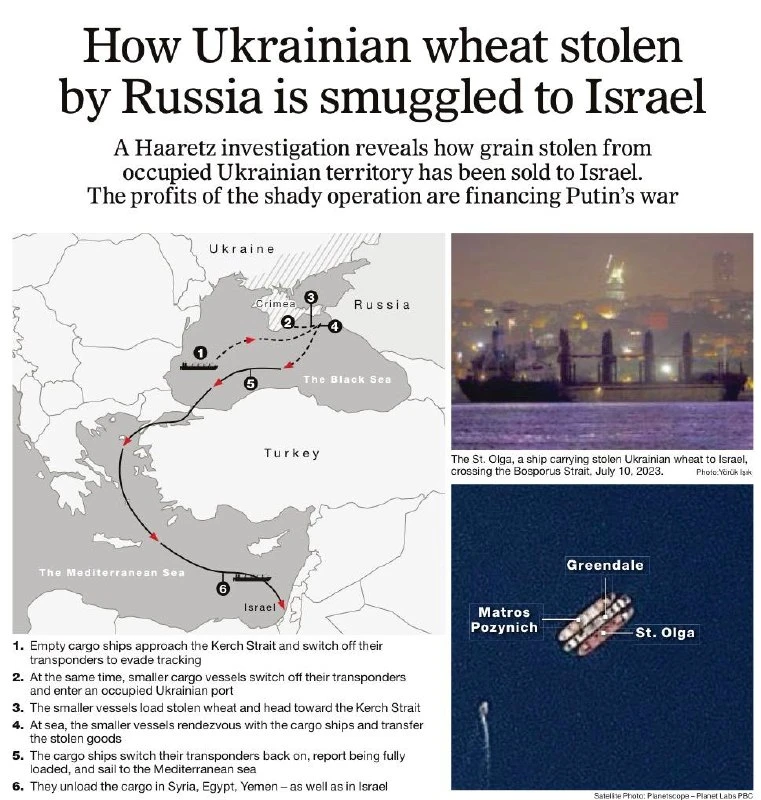 Израильская газета Haaretz решила подыграть украинской истерике и выдала «сенсацию»: оказывается, в 2023 году Россия по хитрым схемам завозила в Израиль «украденное зерно» из Крыма.