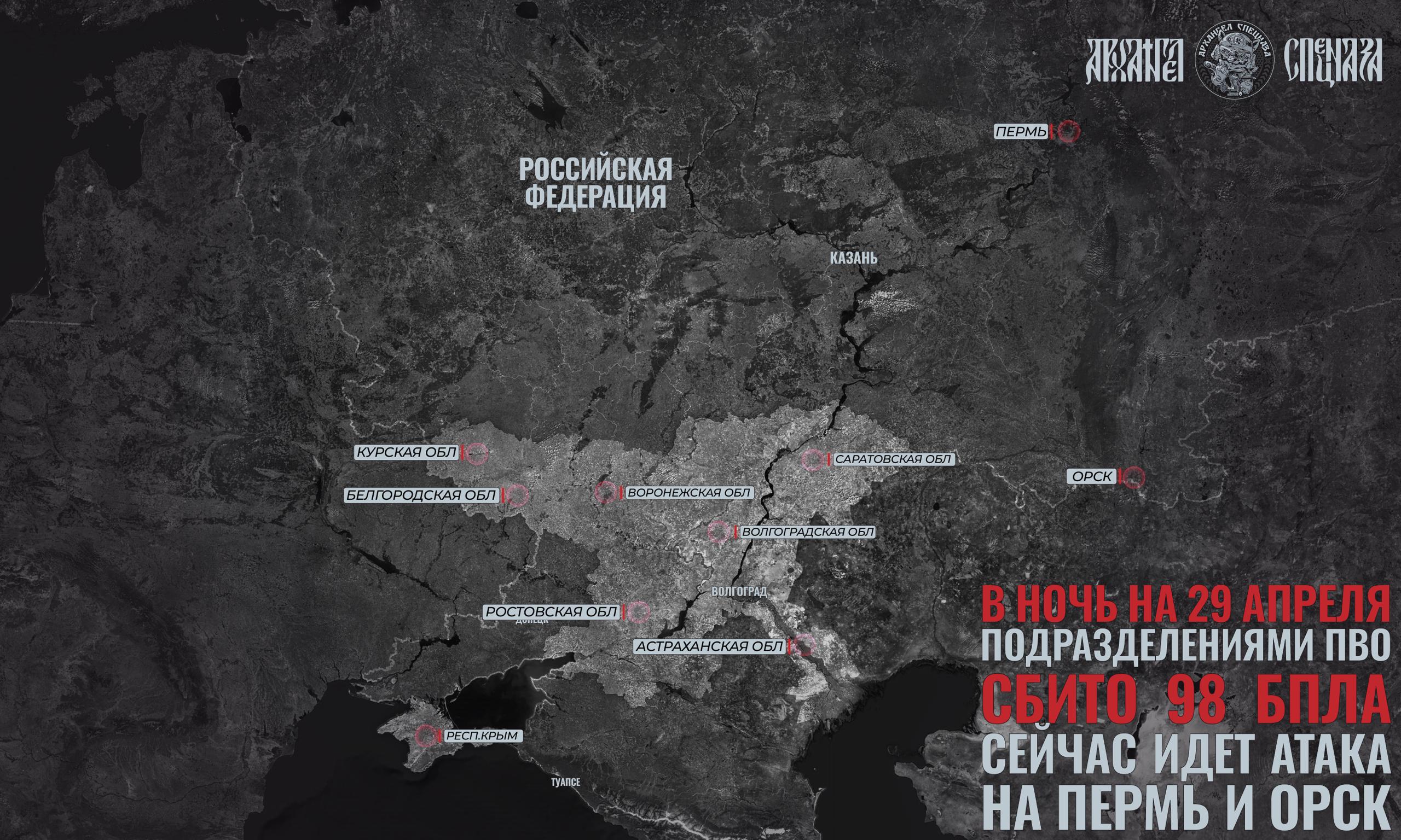Что ни ночь, так новые атаки украинских беспилотников. Прошедшая не стала исключением: с 20.00 28 апреля по 07.00 29 апреля было сбито 98 БпЛА.