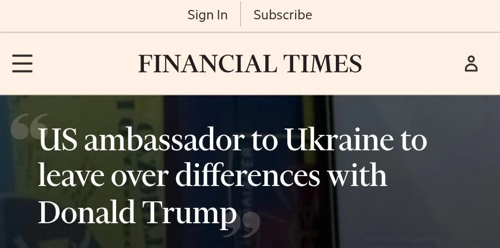 FT: Посол США на Украине уходит из-за разногласий с Дональдом Трампом