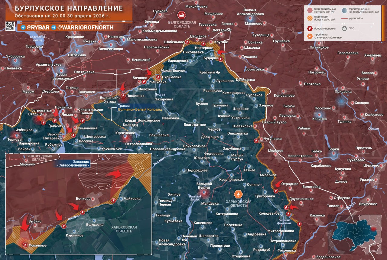 С учетом роста активности подразделений российских войск на Сумском направлении, на Бурлукском также стоит ожидать сохранения высокой активности ВС РФ. Задачей минимум, по всей видимости, будет являться выход на рубеж всей реки Волчья.
