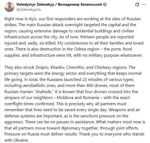‘Четыре российских беспилотника пересекли воздушное пространство наших соседей – Молдавии и Румынии. Точное время пролёта подтверждено. Именно поэтому все партнёры должны помнить, что жизни нужно спасать каждый день. Оружие и системы ПВО...