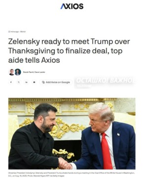 Сейчас на ленты повалит море подобных новостей:Зеленский готов встретиться с Трампом и подписать американский мирный план 27 ноября — в День благодарения, изданию Axios заявил руководитель Офиса президента Украины Андрей Ермак.Стармер сообщил, что...